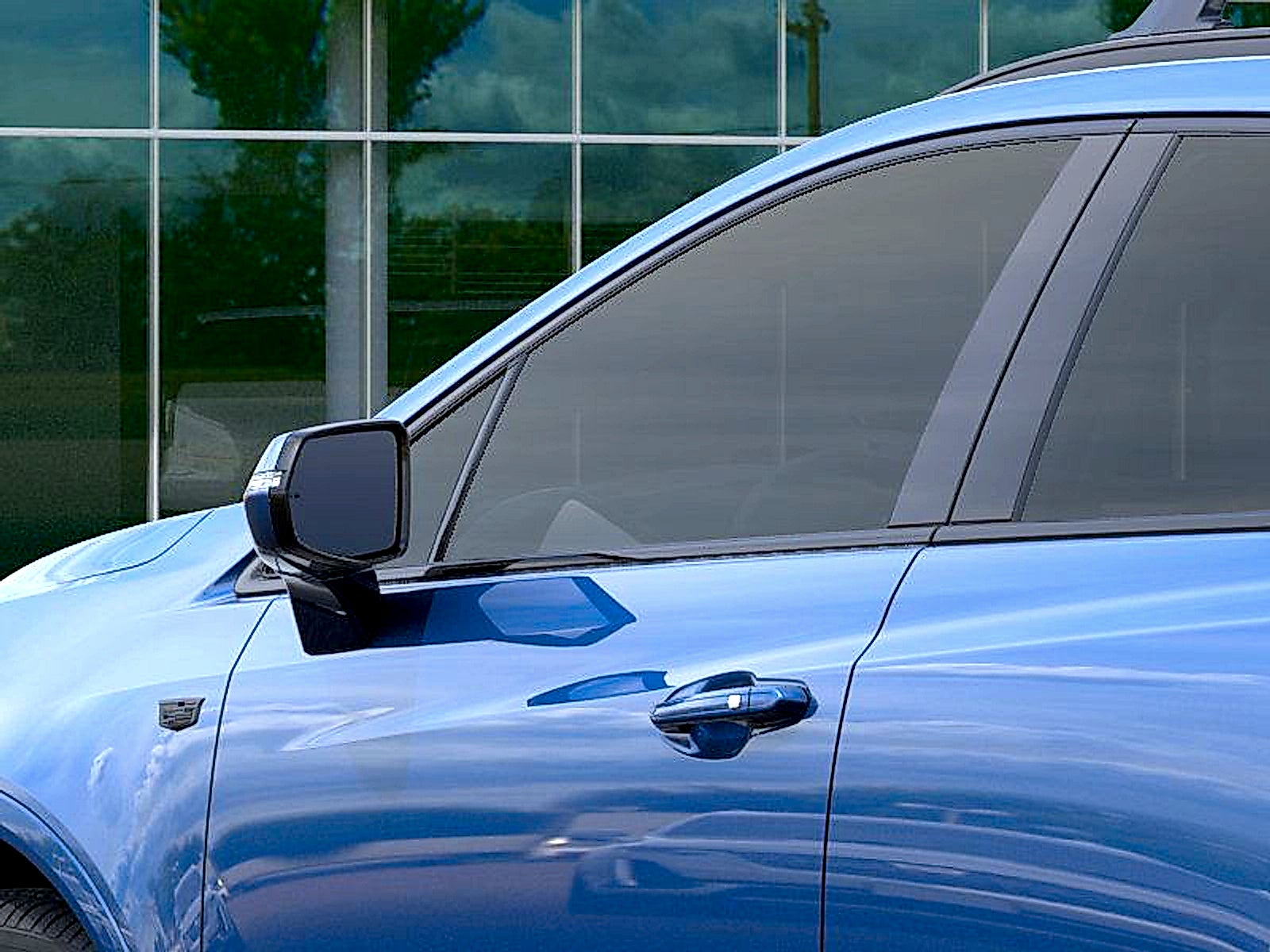 - Opens or closes when the system senses the key fob and the driver extends their foot under the left-hand side of the rear bumper over an image of the Cadillac Crest projected under the vehicle